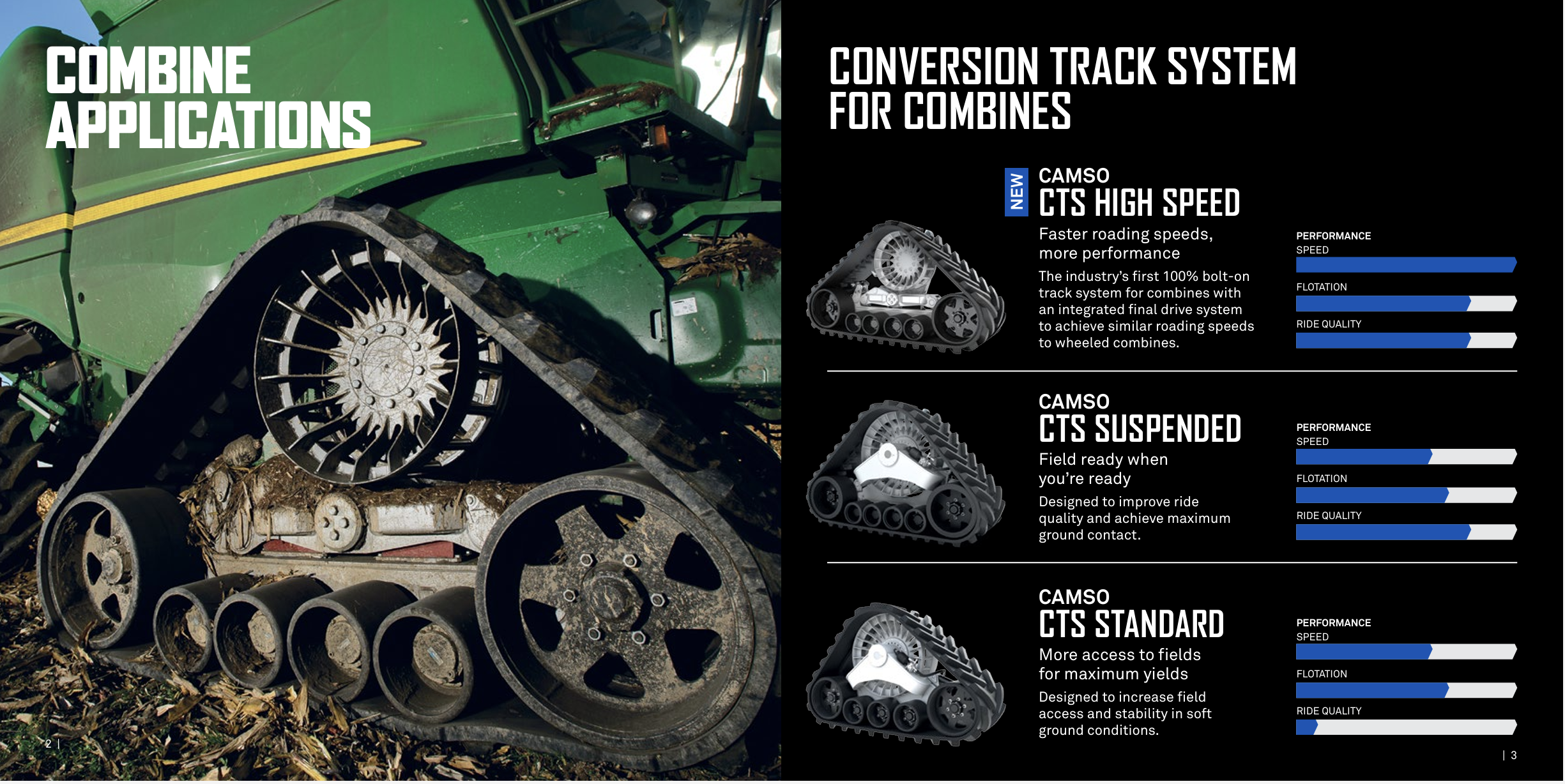 These are the newest and best model of Camso’s High Speed combine tracks made for John Deere combines with ProDrive or 3 Speed Transmission.